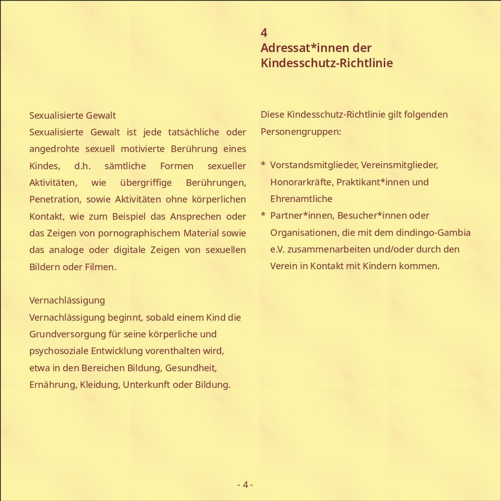 Seit der Gründung 2001 stehen in unserer Arbeit die Unterstützung von Kindern und Jugendlichen und ihrer Rechte, Chancen, gesunde und gewaltfreie Entwicklung in unserem Selbstverständnis. Die Kindesschutz-Richtlinie verankert dies in unserer Vereinsarbeit.